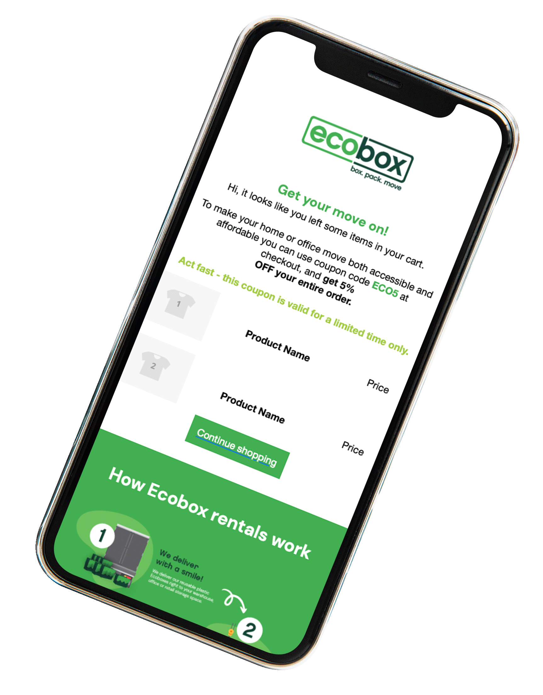 Social media posts for an online packaging rental company